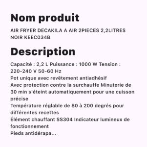 AIR FRYER DECAKILA A AIR 2PIECES 2,2L NOIR KEEC034B