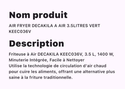 AIR FRYER DECAKILA A AIR 3,5L VERT KEEC036V