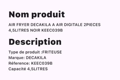 AIR FRYER DECAKILA A AIR DIGITALE 2PIECES 4,5L NOIR KEEC029B