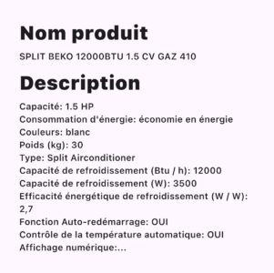 CLIMATISEUR BEKO 12000BTU 1,5 GAZ 410