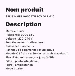 CLIMATISEUR HAIER 9000BTU 1CV GAZ 410