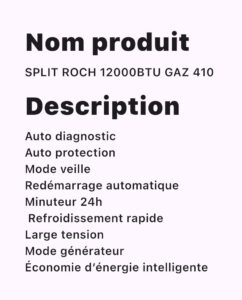 CLIMATISEUR ROCH 12000BTU GAZ 410