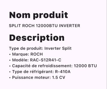 CLIMATISEUR ROCH 12000BTU INVERTER