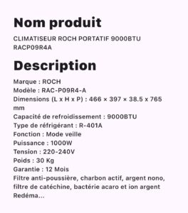 CLIMATISEUR ROCH PORTATIF 9000BTU RACP09R4A