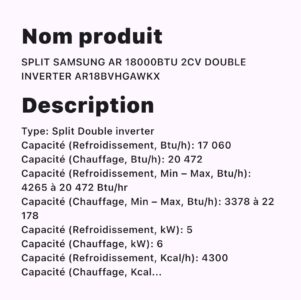 CLIMATISEUR SAMSUNG AR 18000 2CV DOUBLE INVERTER AR18BVHGAWKX