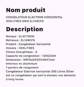 CONGELATEUR ELACTRON HORIZONTAL 300L GRIS EL149CFS