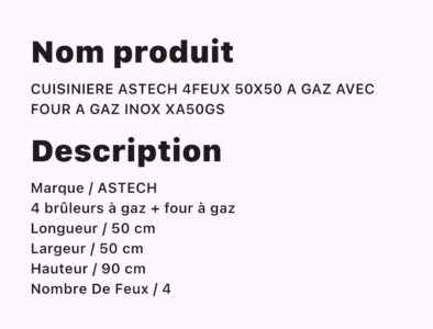 CUISINIERE ASTECH 4FEU 50X50 A GAZ AVEC FOUR A GAX INOX XA50GS