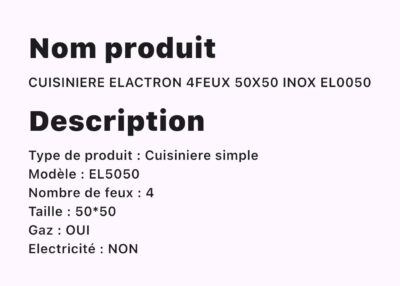 CUISINIERE ELACTRON 4FEUX 50X50 INOX EL0050