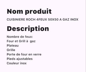 CUISINIERE ROCH 4FEUX 50X50 A GAZ INOX