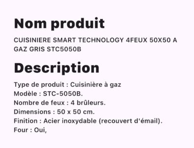 CUISINIERE SMART TECHNOLOGY 4FEU 50X50 A GAZ GRIS STC5050B