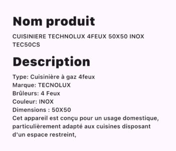 CUISINIERE TECHNOLUX 4FEU 50X50 INOX TEC50CS