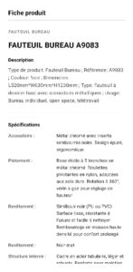 FAUTEIL DE BUREAU ERGONOMIQUE AVEC TETE - KT2206