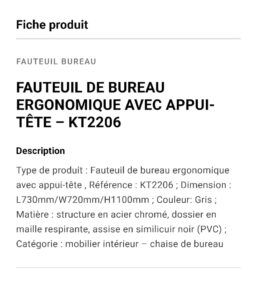 FAUTEIL DE BUREAU ERGONOMIQUE AVEC TETE – KT2206