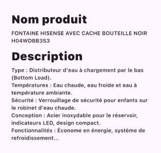 FONTAINE HISENSE AVEC CACHE BOUTEILLE NOIR H04WDBB3S3