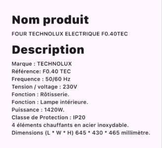 FOUR TECHNOLUX ELECTRIQUE F040TEC