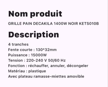 GRILLE PAIN DECAKILA 1400W NOIR KETS010B