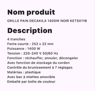 GRILLE PAIN DECAKILA 1400W NOIR KETS011B