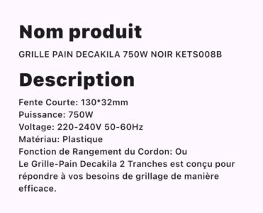 GRILLE PAIN DECAKILA 1400W NOIR KETS010B