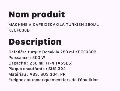 MACHINE A CAFE DECAKILA TURKICH 250ML KECF030B
