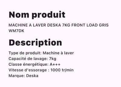 MACHINE A LAVER DESKA 7KG FRONT LOAD GRIS ZM7DK