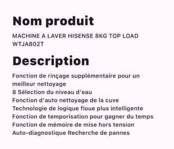 MACHINE A LAVER HISENSE 8KG TOP LOAD WTJA802T