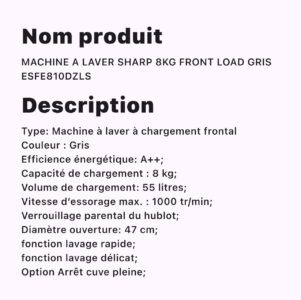 MACHINE A LAVER SHARP 8KG FRONT LOAD GRIS EDFE810DZLS