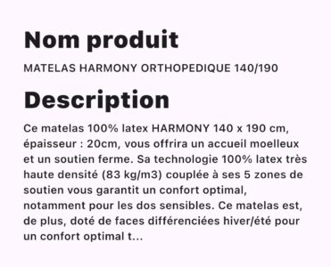 MATELAS HARMINY ORTHOPEDIQUE 140/190