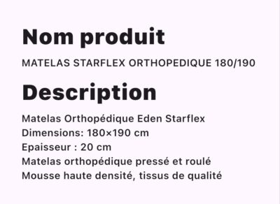 MATELAS STARFLEX ORTHOPEDIQUE 180/190