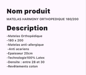 MATELAS HARMONY ORTHOPEDIQUE 180/190