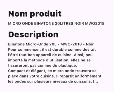 MICRO ONDE BINATONE 20L NOIR MW02018