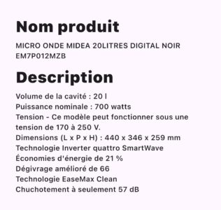 MICRO ONDE MIDEA 20L DIGITAL NOIR EM7P012MZB
