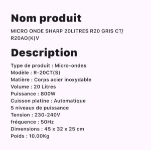 MICRO ONDE SHARP 20L R20 GRIS CT/R20AQ(K)V
