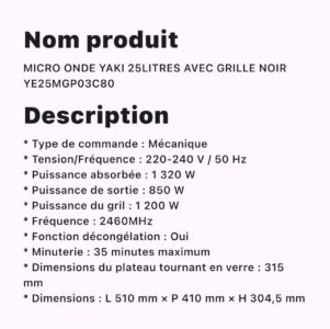 MICRO ONDE YAKI 25L AVEC GRILLE NOIR YE24MG003C80