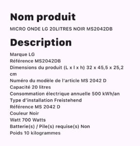 MICROONDE LG 20L NOIR MS2042DB