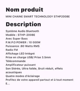 MINI CHAINE SMART TECHNOLGY STHP2008E