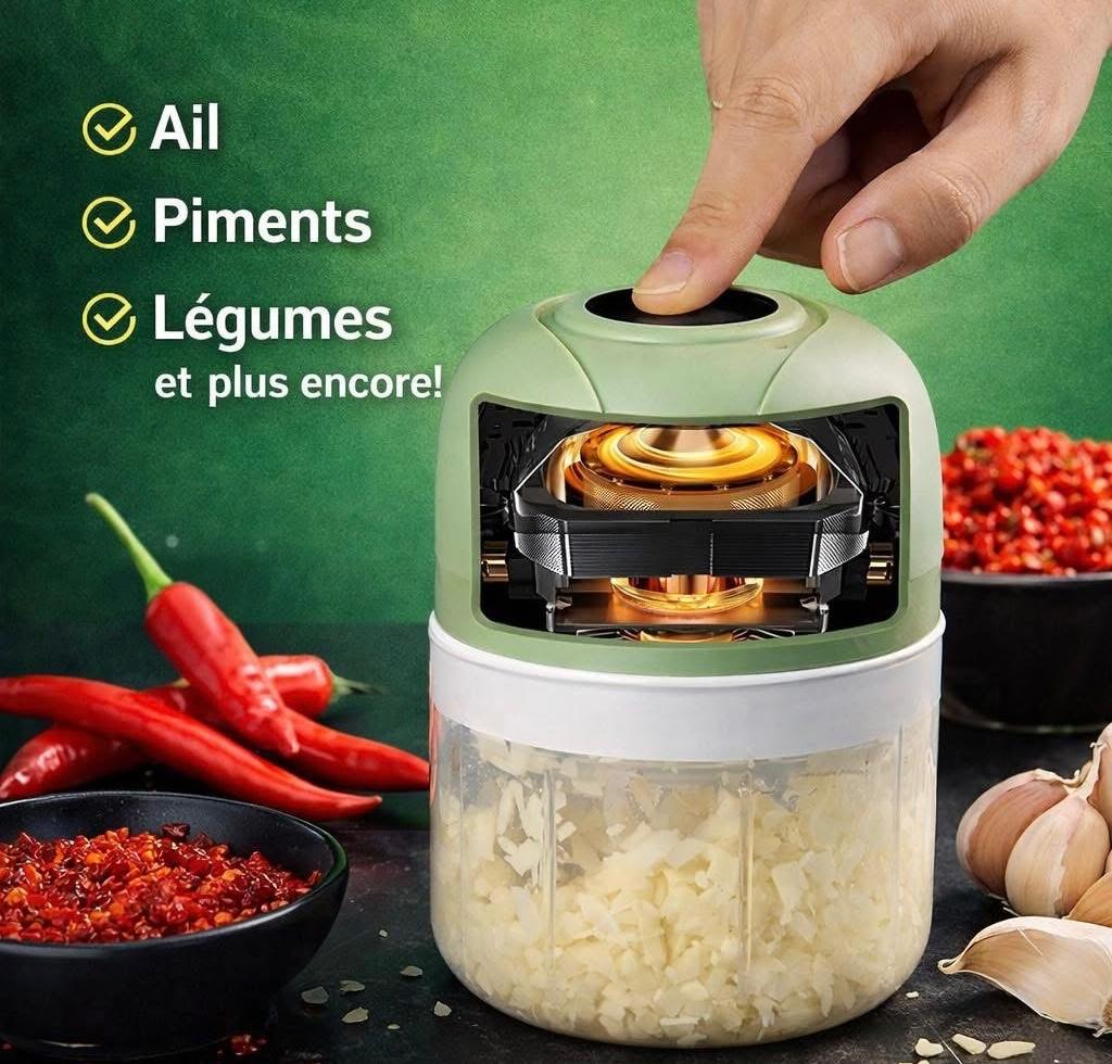 Le mini hachoir électrique rechargeable coupe, hache et mixe rapidement vos aliments en un seul geste. Compact et puissant, il est idéal pour l’ail, l’oignon, les légumes, la viande et les épices. Parfait pour une cuisine rapide et sans effort.