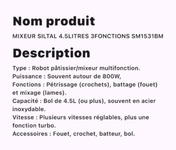 MIXEUR SILTAL 4,5 L 3 FONCTIONS SM1531BM