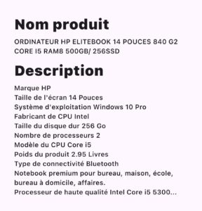 ORDINATEUR HP ELITEBOOK 14 POUCES 840 G2 CORE I5 RAM8