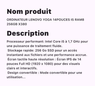 ORDINATEUR LENOVO YOGA 14POUCES I5 RAM8