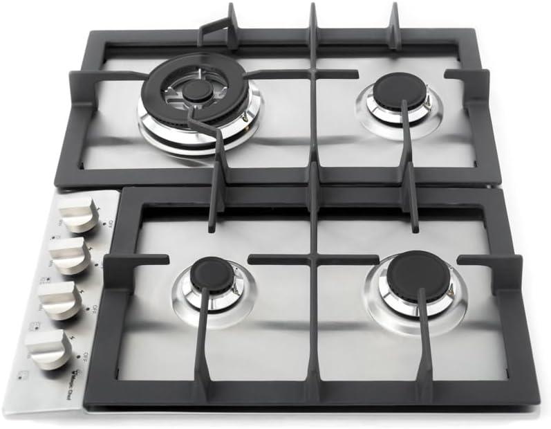 Configuration : 4 foyers à gaz de différentes puissances pour tout type de cuisson.