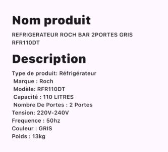 REFRIGERATEUR ROCH BAR 2PORTES GRIS RFR110DT