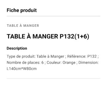 TABLE A MANGER P132(1+6)