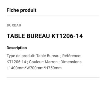 TABLE BUREAU KT1206-14