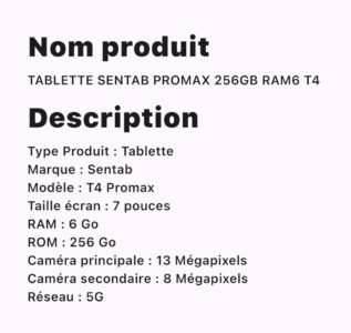 TABLETTE SENTAB PROMAX 256GB RAM6 T4