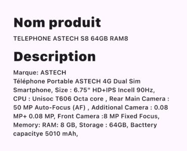 CFA 90.000,00 Le prix initial était : CFA 90.000,00.CFA 85.000,00Le prix actuel est : CFA 85.000,00.