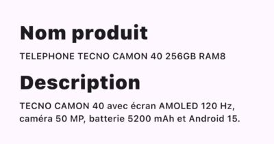CFA 195.000,00 Le prix initial était : CFA 195.000,00.CFA 190.000,00Le prix actuel est : CFA 190.000,00.