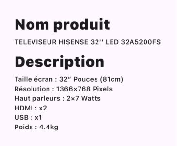 TELEVISEUR HISENSE 32 » LED 32A5200FS
