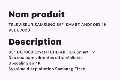 TELEVISEUR SAMSUNG 85 » SMART ANDROID 4K 85DU7000
