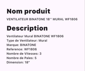 VENTILATEEUR BINATONE 18 » MURAL WF1806