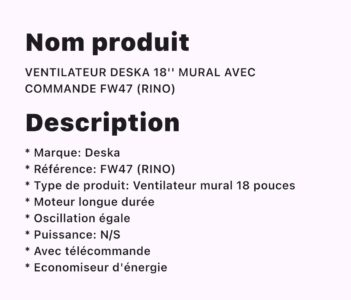 VENTILATEUR DESKA 18 » MURAL AVEC COMMANDE FW47 (RINO)
